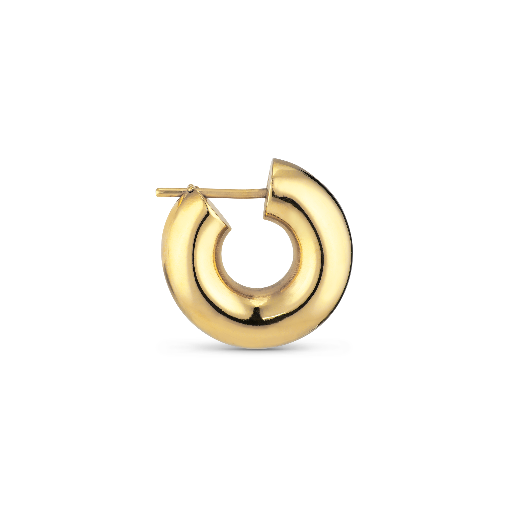 Small chunky hoop in shiny, gold-plated sterling silver.